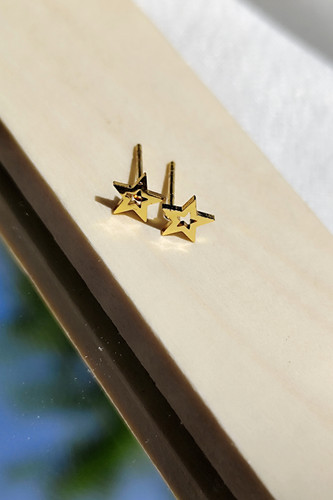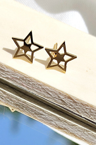 گوشواره میخی طرح ستاره رنگ طلایی استیل رنگ ثابت