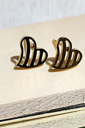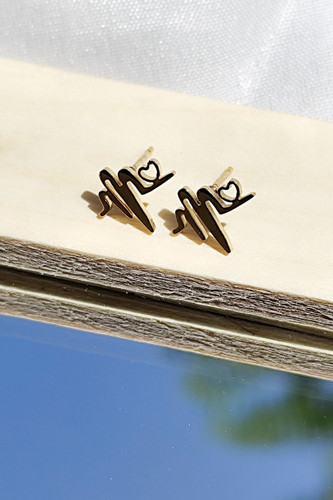 گوشواره میخی طرح ضربان و قلب رنگ طلایی استیل رنگ ثابت