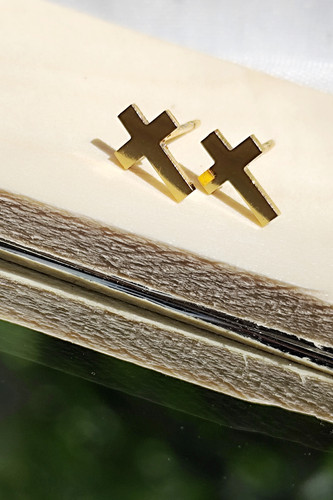 گوشواره میخی طرح صلیب رنگ طلایی استیل رنگ ثابت
