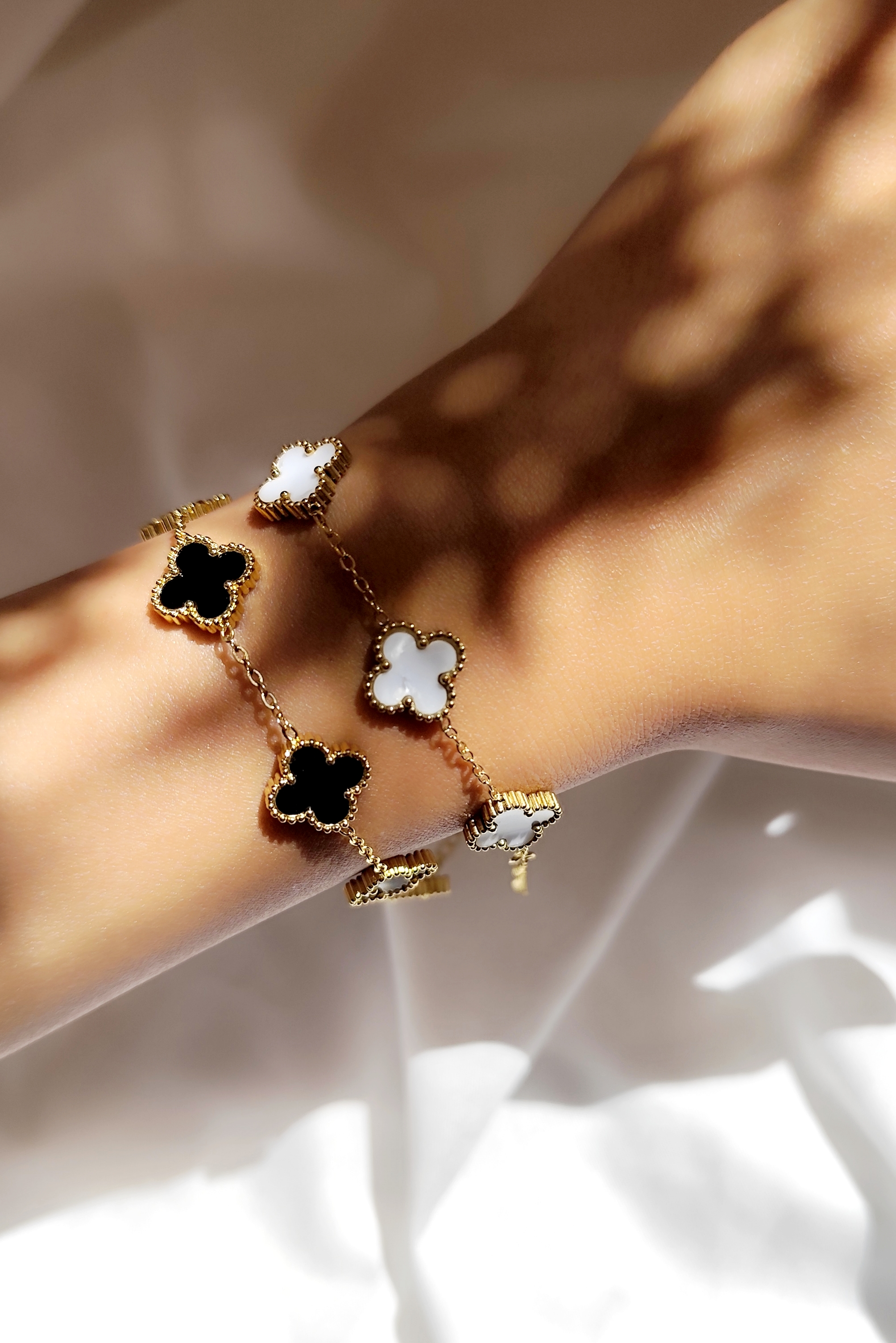 دستبند ونکلیف رنگ ثابت صدف دوطرفه سفید و مشکی 🤍