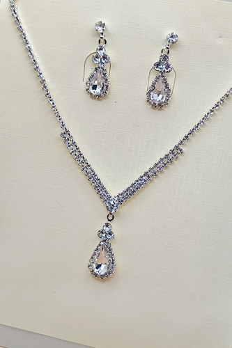 نیمست گوشواره و گردنبند جواهری طرح نگین مربع