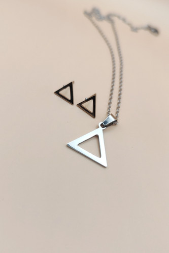 نیمست گوشواره و گردنبند استیل رنگ ثابت طرح مثلث