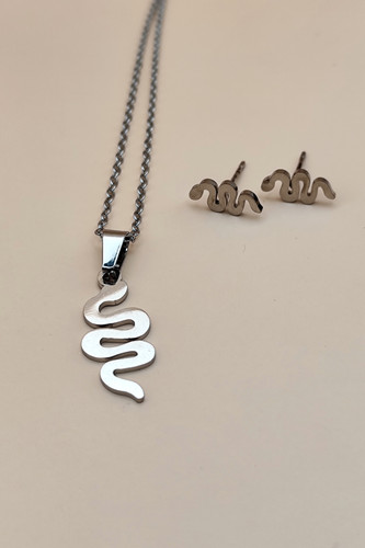نیمست گوشواره و گردنبند استیل رنگ ثابت طرح مار