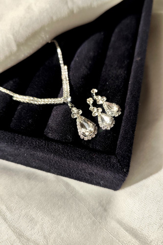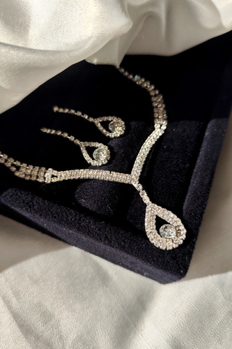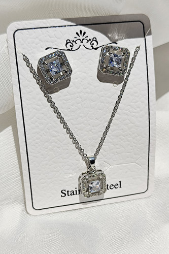 نیمست گوشواره و گردنبند جواهری طرح نگین مربع