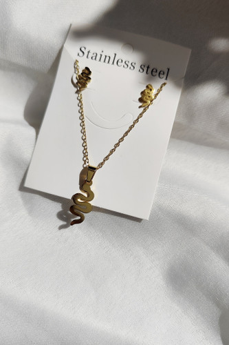 نیمست گوشواره و گردنبند استیل رنگ ثابت طرح مار