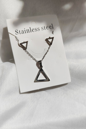 نیمست گوشواره و گردنبند استیل رنگ ثابت طرح مثلث