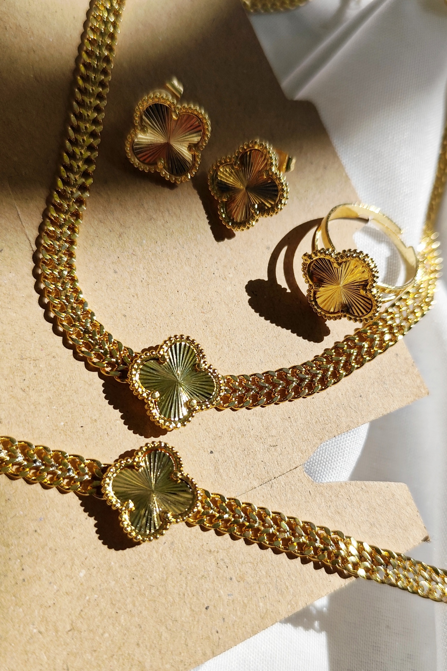 ست کامل انگشتر دستبند گردنبند و گوشواره ورساچه طلایی