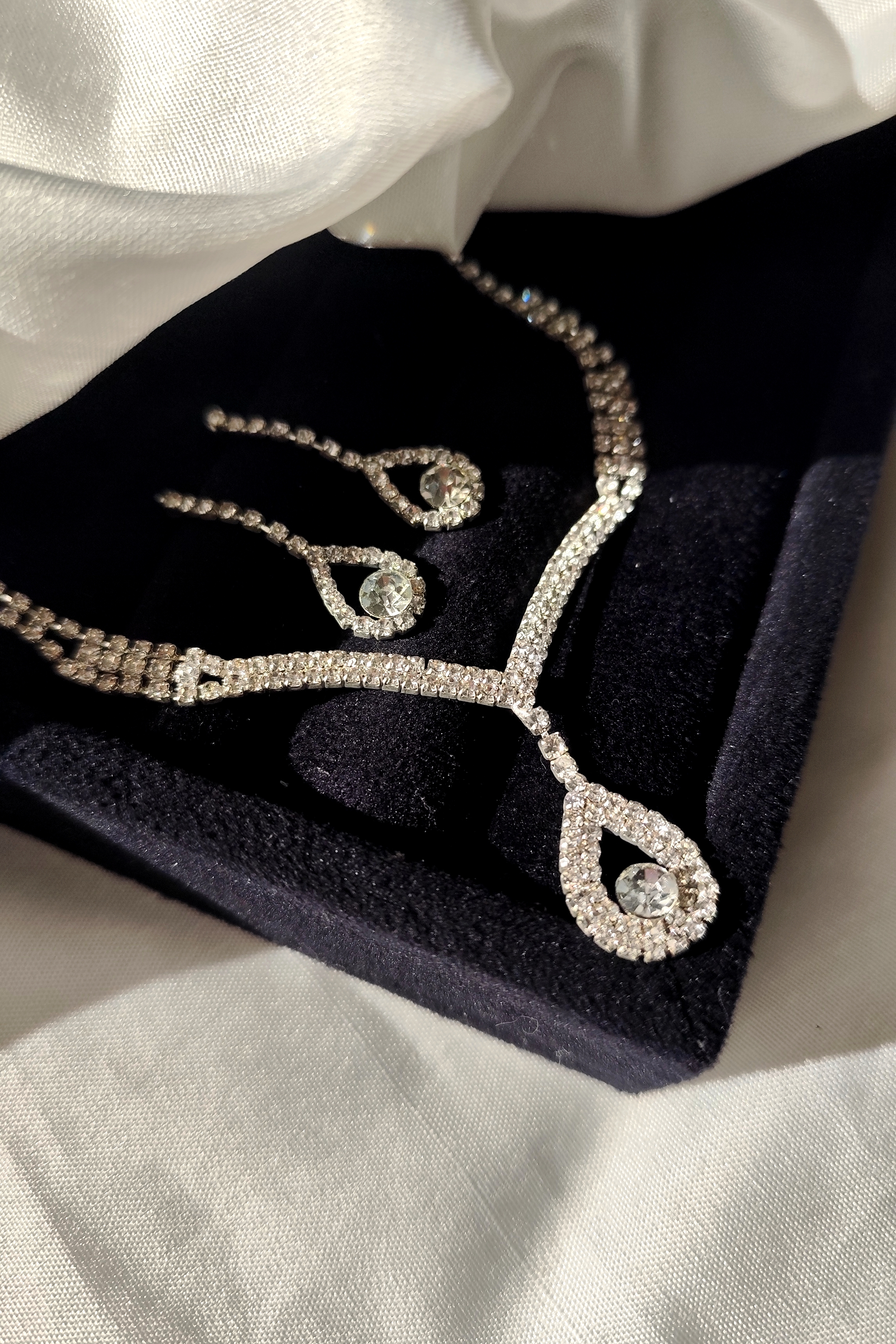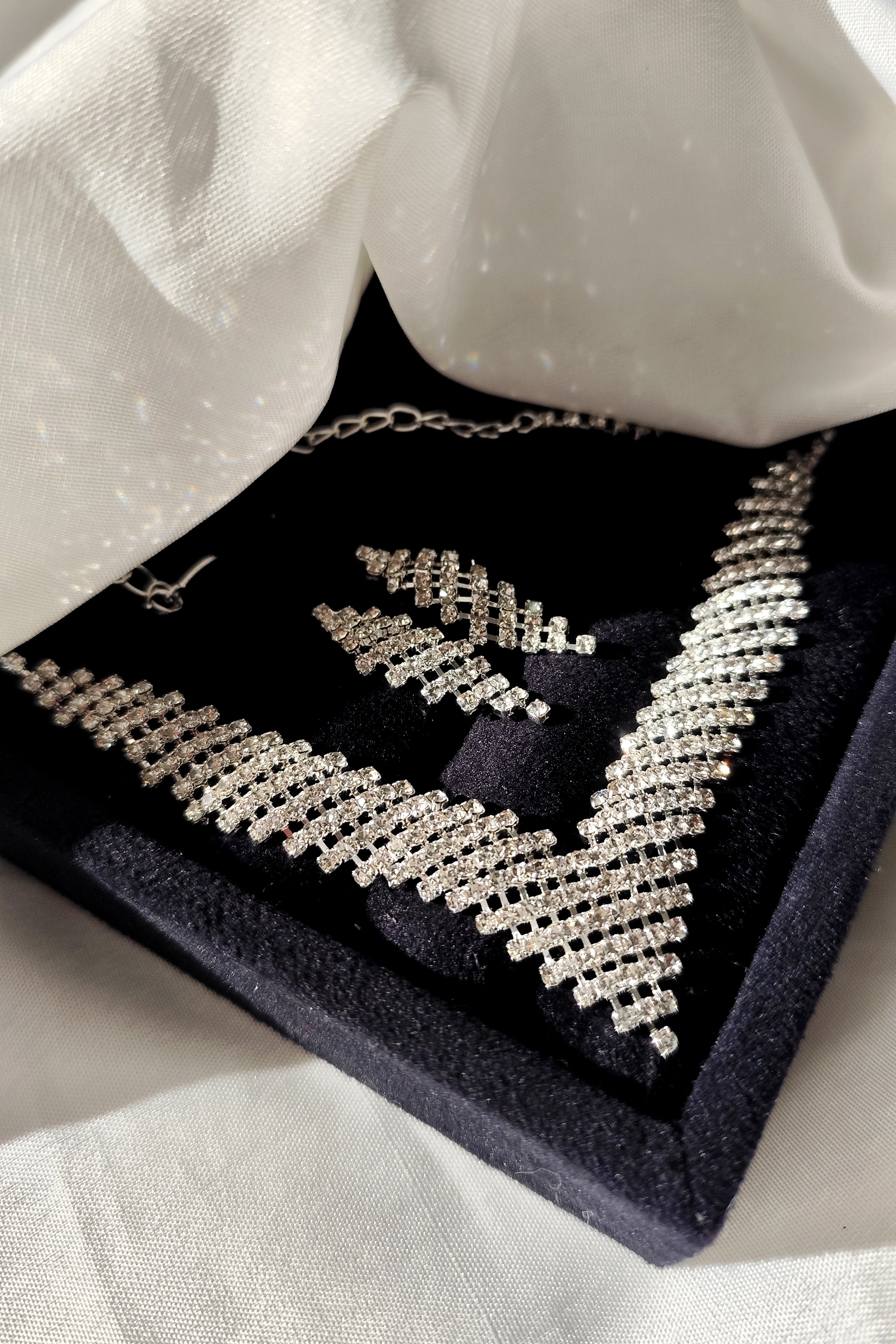 نیمست گوشواره و گردنبند جواهری طرح نگین مربع