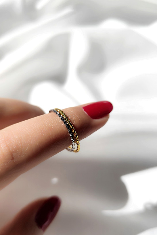 رینگ یک میل استیل رنگ ثابت طلایی و نقره ای