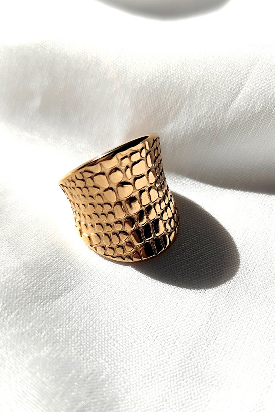 انگشتر زنانه طرح طلا پوست ماری استیل رنگ ثابت