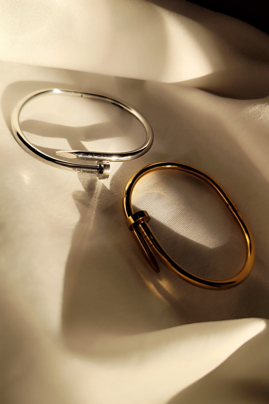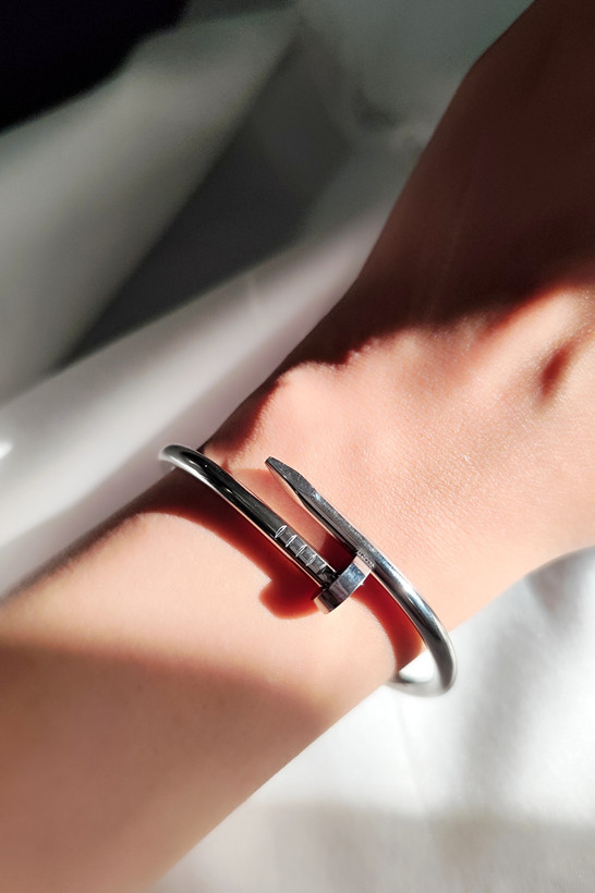 دستبند کارتیه میخی استیل رنگ ثابت با حک برند
