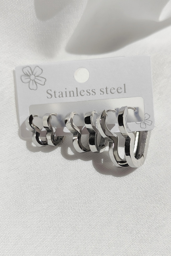 گوشواره قلبی در سه سایز متفاوت استیل رنگ ثابت