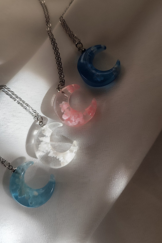 گردنبند ماه آسمان ابری رزین شبتاب با زنجیر استیل رنگ ثابت