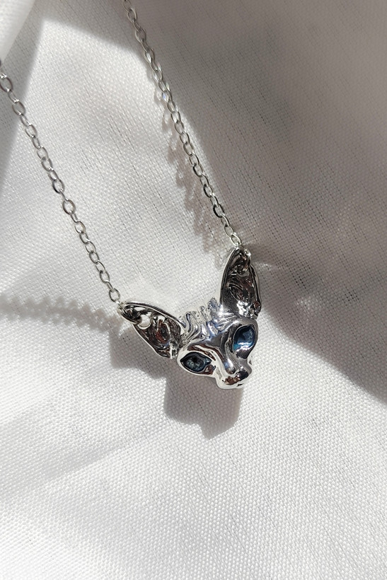 گردنبند گربه چشم آبی استیل رنگ ثابت