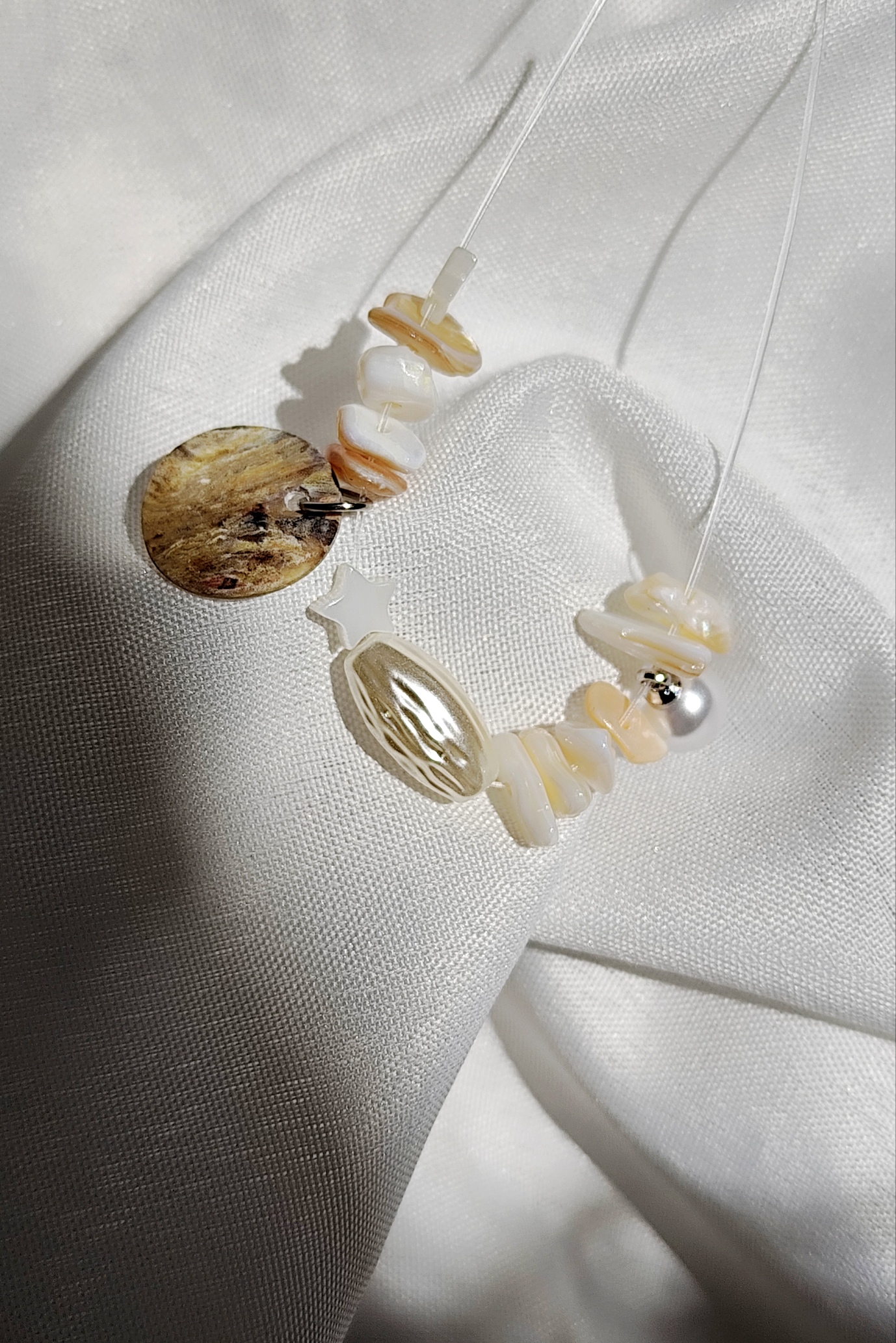 گردنبند بند نامرئی ترکیب سنگ و صدف
