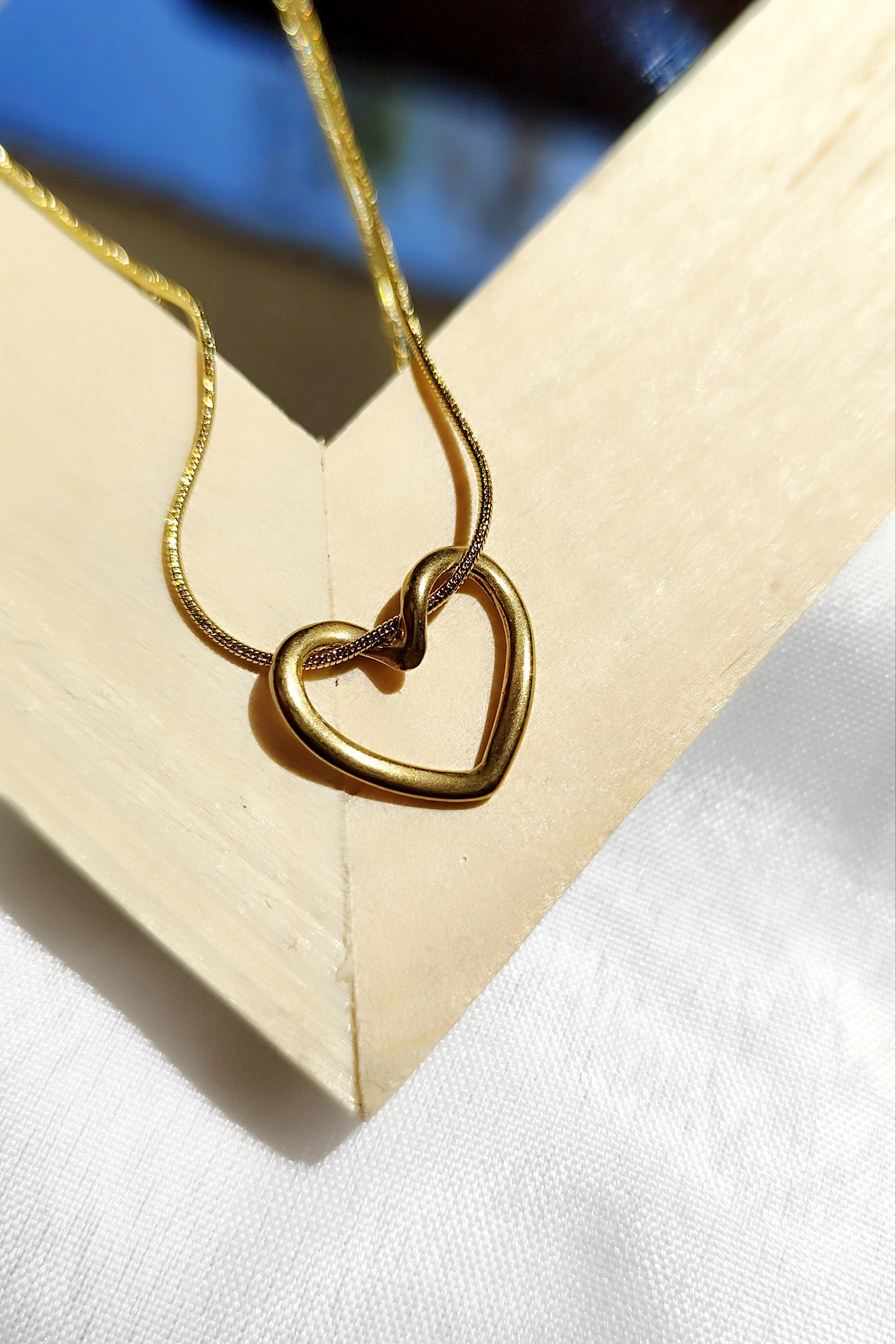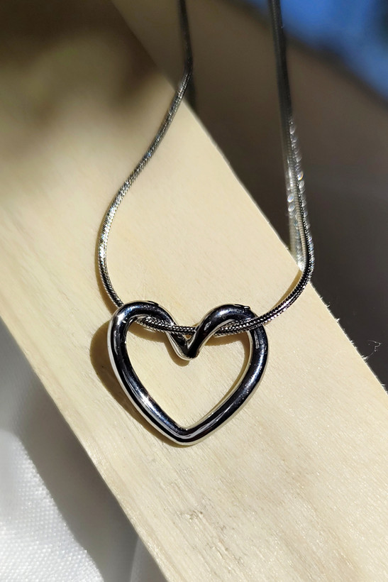 گردنبند قلب دفرمه با زنجیر ماری رنگ طلایی و نقره ای ثابت
