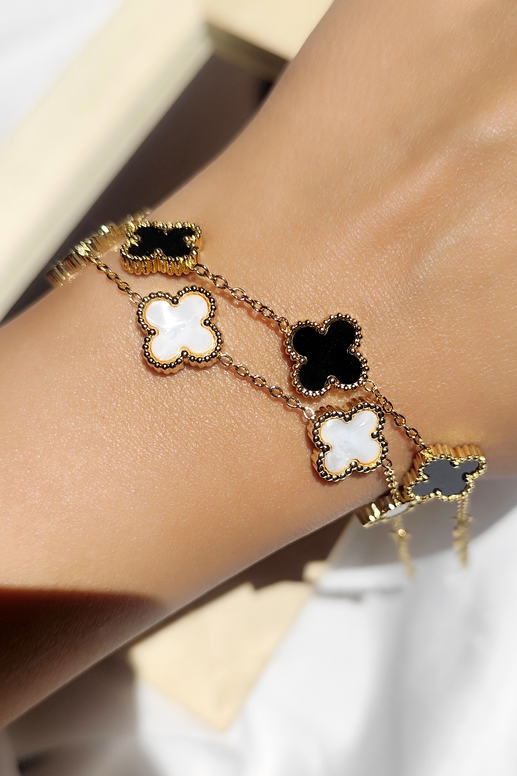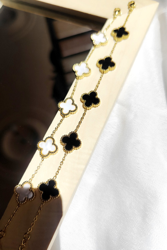 دستبند ونکلیف رنگ ثابت صدف دوطرفه سفید و مشکی 🤍