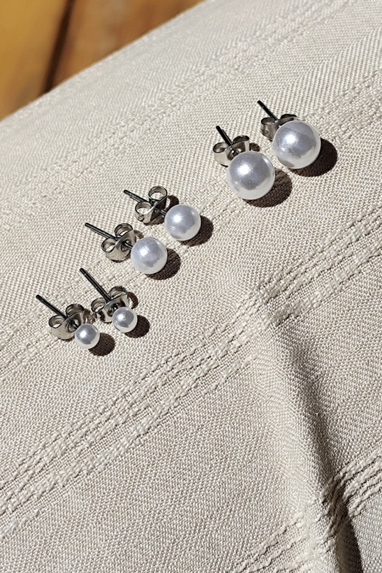 گوشواره مرواریدی پشت استیل رنگ ثابت در سه سایز