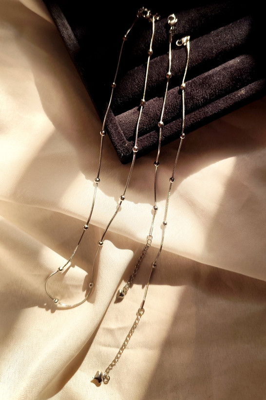 زنجیر ماری توپی رنگ ثابت نقرهای دستبند و گردنبند و پابند