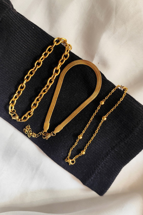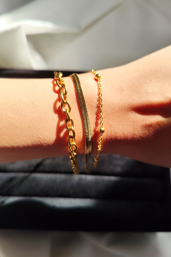 دستبند پک سه تایی طلایی استیل رنگ ثابت