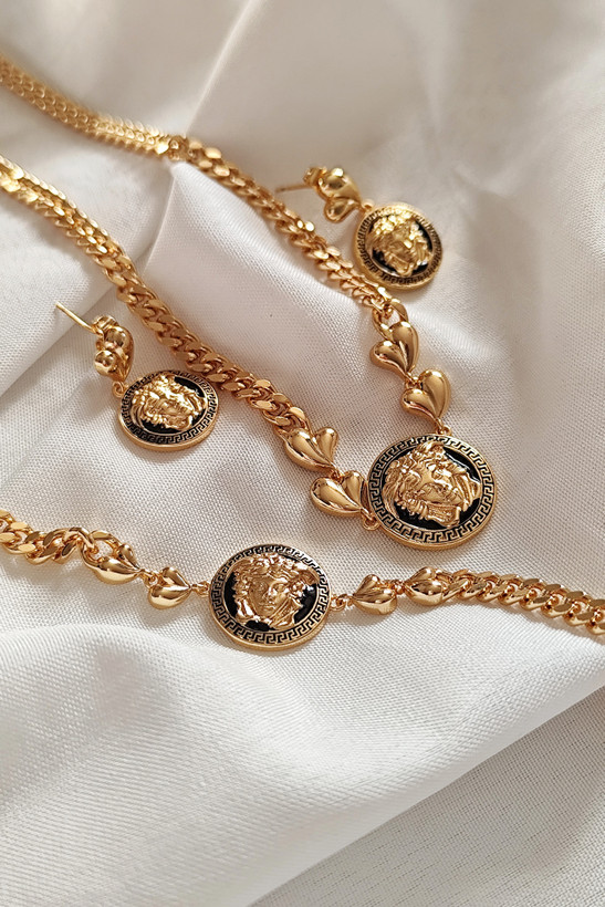 ست کامل انگشتر دستبند گردنبند و گوشواره ورساچه طلایی