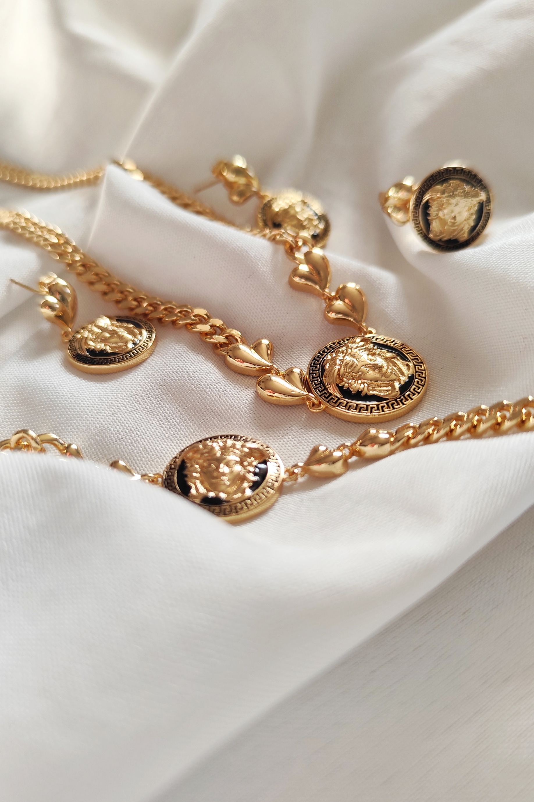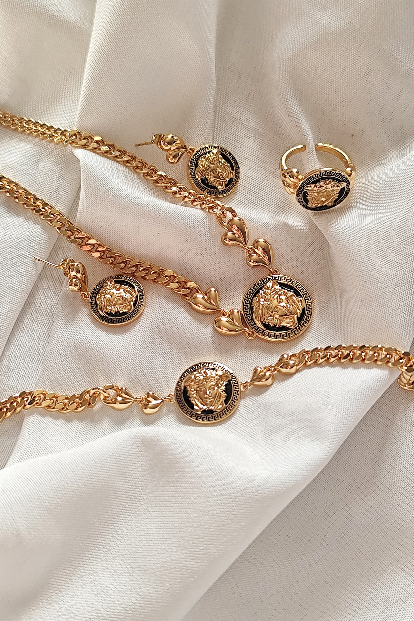ست کامل انگشتر دستبند گردنبند و گوشواره ورساچه طلایی