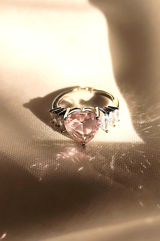 انگشتر زنانه طرح قلب صورتی جواهری فری سایز
